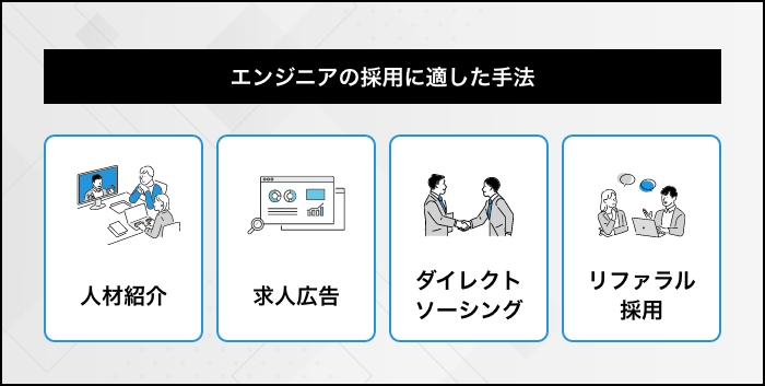 後ほどエンジニア採用に適した手法について具体例を挙げて紹介するので、そちらもぜひ参考にしてください。