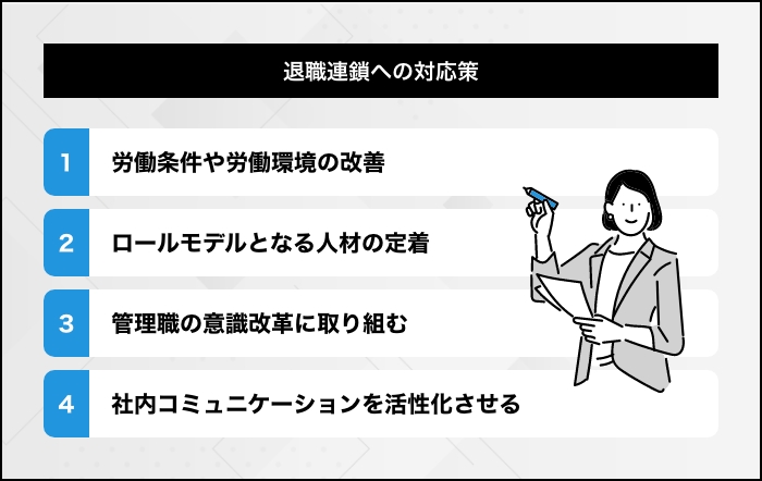 退職連鎖を防ぐためには、企業としてどのような取り組みを進めるべきなのでしょうか。ここでは、具体的なポイントとして4つの施策をご紹介します。