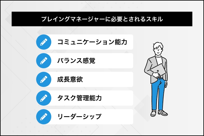 プレイングマネージャーとして活躍してもらうには、必要なスキルを備えた人材をポジションに充てることが大切です。どのようなスキルが具体的に求められるのかを解説します。