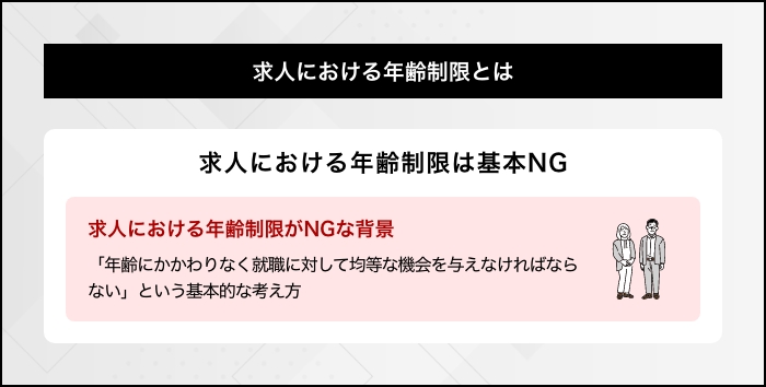 求人の年齢制限が禁止された背景には、「年齢にとらわれることなく、就職に対して均等な機会を与えるべし」という考え方があります。