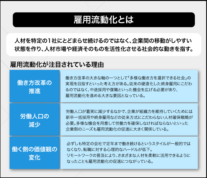 こうした企業側のニーズも、雇用流動化の促進に大きく関係していると考えられます。