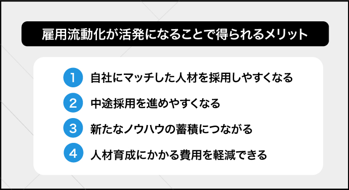 雇用流動化が促進されることで、個々の企業にはどのような影響が生まれるのでしょうか。ここでは、主なメリットについて、4つのポイントに分けて見ていきましょう。