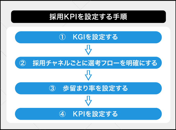 採用KPIを設定するには、ゴールから逆算して一つずつ丁寧に目標を洗い出す必要があります。ここでは、次の4つのステップに分けて、具体的な設定方法について解説します。