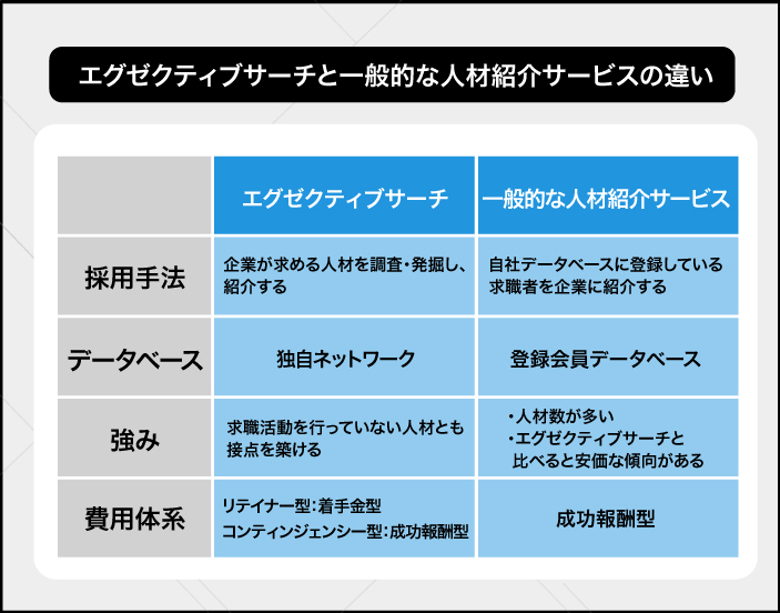 エグゼクティブサーチと一般的な人材紹介サービスとの違い