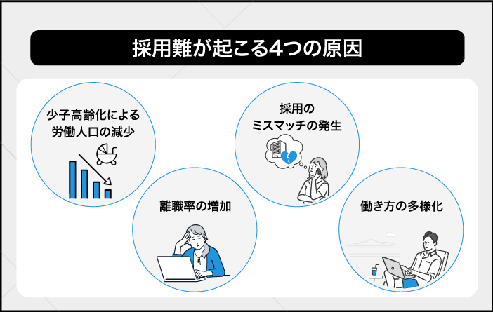 ここでは、以下の4つの観点から、採用難が起こる原因について見ていきましょう。