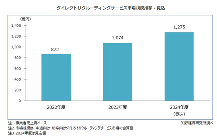 ダイレクトリクルーティングの市場規模は前年度比23.2%増の1,074億円