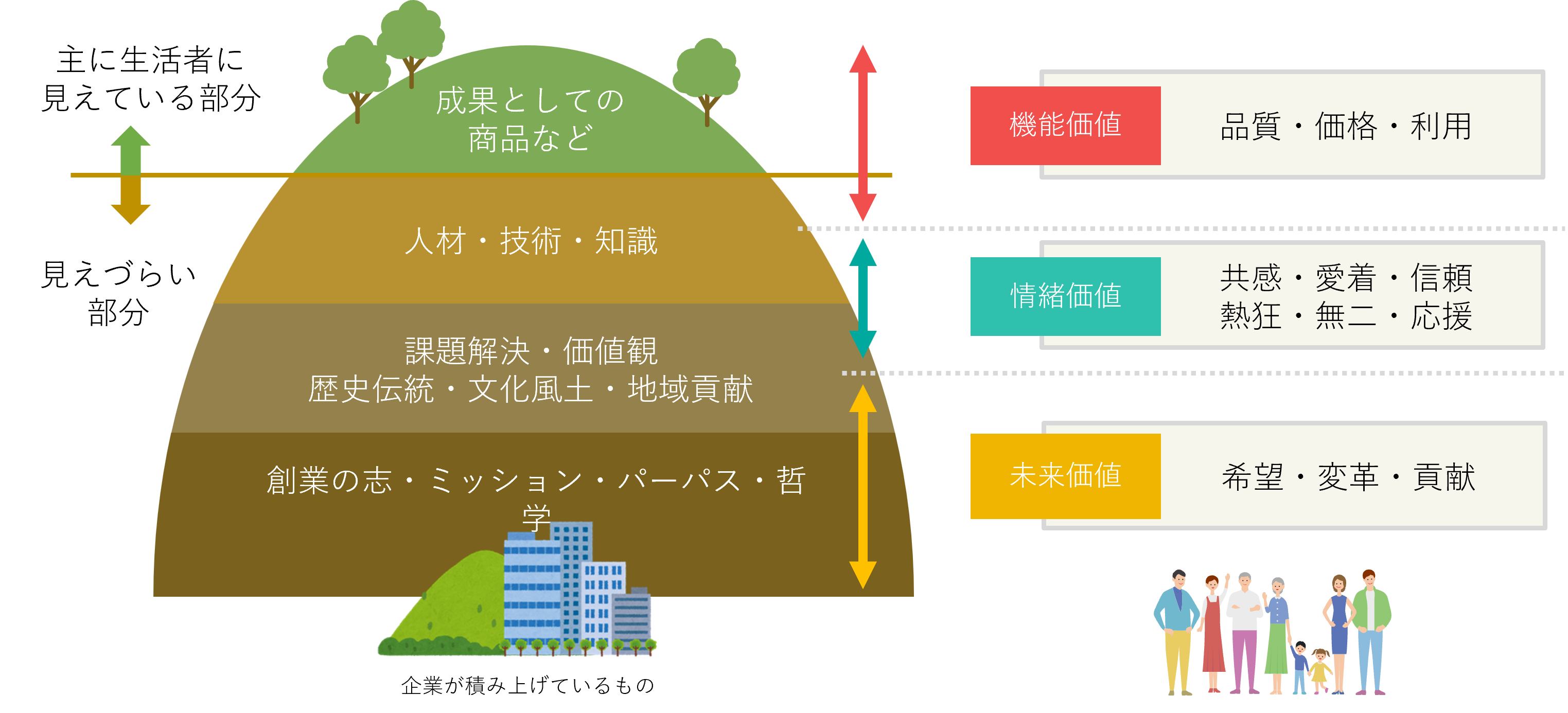 ファンが企業に感じる価値は、「機能価値」、「情緒価値」、「未来価値」で整理ができる