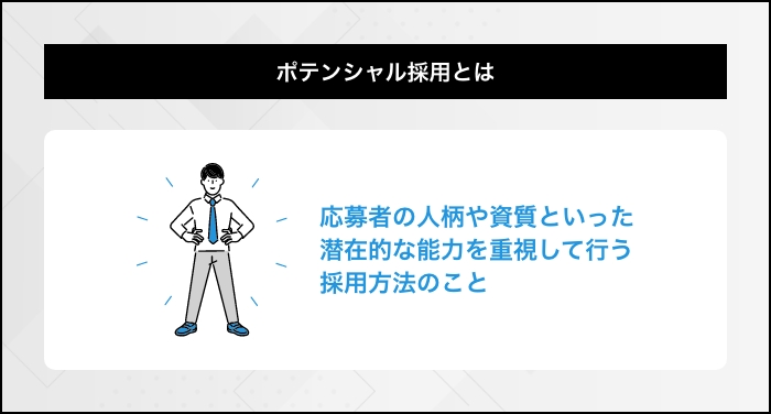 ポテンシャル採用とは、応募者に業界経験やスキルがなくても、本人の資質や将来的な可能性で採用を判断する手法をいいます。