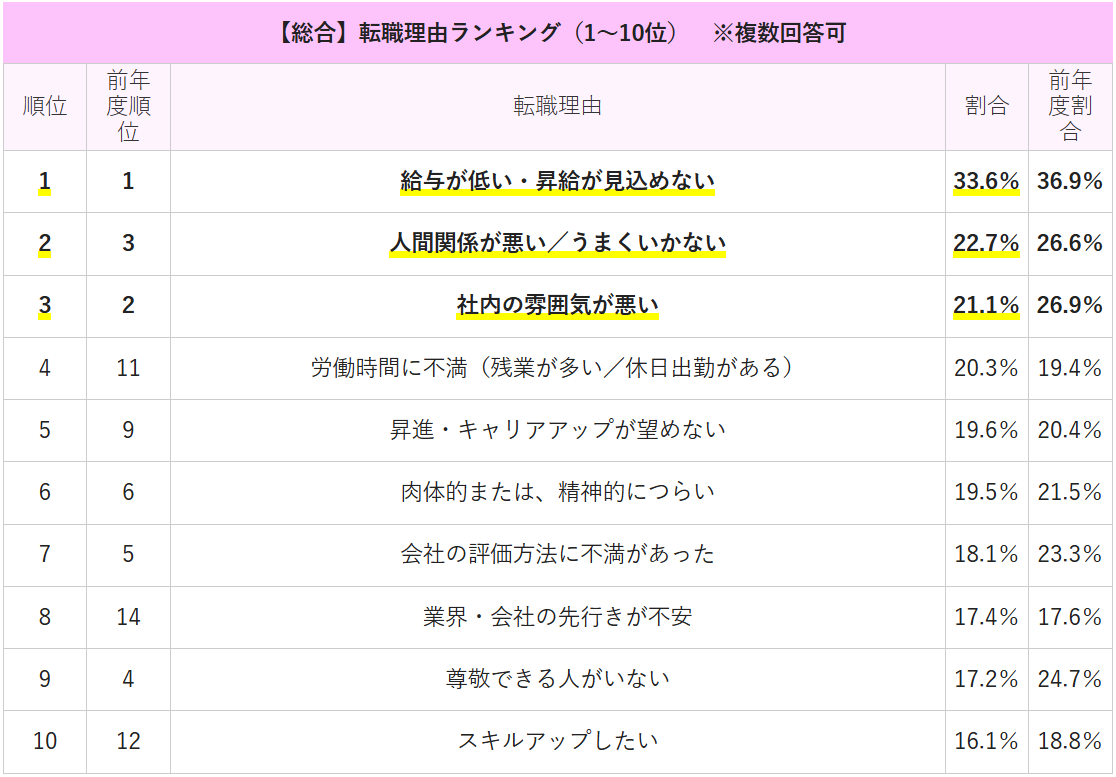 「転職理由ランキング【最新版】 みんなの本音を調査!(公開日:2025年2月17日)」より