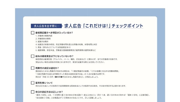 求人広告を掲載する際に、必ずチェックしておきたいポイントをまとめました。トラブルを防ぐためにも確認しておきましょう