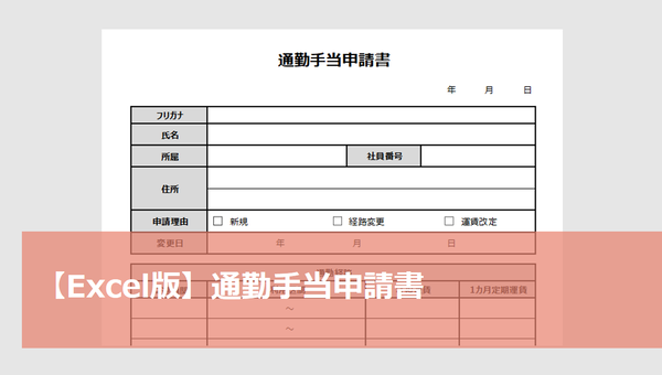 入社時や経路変更時にご使用いただける通勤手当申請書(Excel)をご用意しました。ぜひご活用ください。