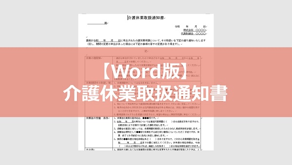 介護休業の取扱いについて会社が従業員に通知する際のテンプレートを用意しました。Word版としてすぐにご使用いただけます。