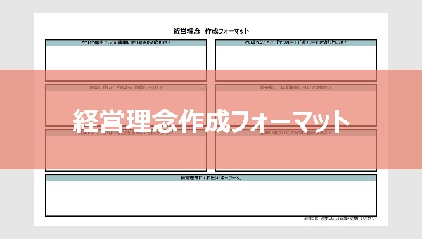 経営理念は、経営の基本となる「考え方」や「価値観」「創業者・経営者の想い」を言葉で表したものです。経営理念の原案を作成する際に活用できるExcel形式のテンプレートフォーマットをご用意しました。