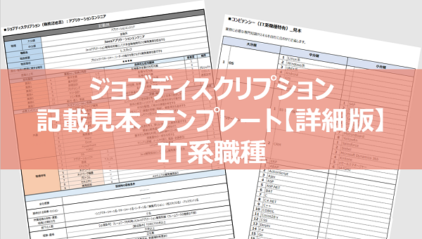 近年では同一労働・同一賃金の導入や成果主義などの広がりによってジョブ型雇用やジョブディスクリプションの導入が進んでいます。本ドキュメントでは、ジョブディスクリプションの作成手順、IT系4職種の詳細な記載見本、全職種で使えるテンプレートをご用意しました。