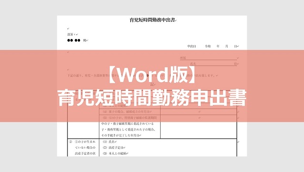 育児に関連する短時間勤務申出書のフォーマットです。※サンプルになりますので、使用の際は厚生労働省が公表している様式例や会社規定、社内法務などの確認をお願いします。