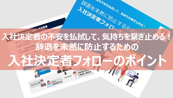 入社辞退に悩む担当者様へ。本資料では、新卒はもちろん転職領域でも参考になる、入社決定者フォローのポイントについて詳しく解説しています。ご活用ください。