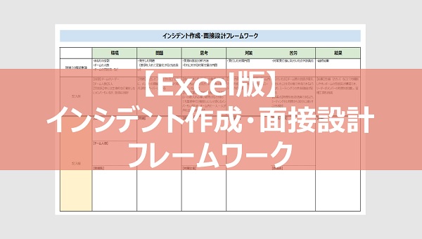 インシデントを構成する要素には、「環境」「問題」「思考」「対策」「苦労」「結果」の6つがあります。面接で使用するインシデントをつくる際には、これらを基本に、現場の状況を確認したり、意見聴取を行ったりするとよいでしょう。このフレームワークを使い、自社で実際に起こっている事例を把握し、インシデント面接の設計にお役立てください。