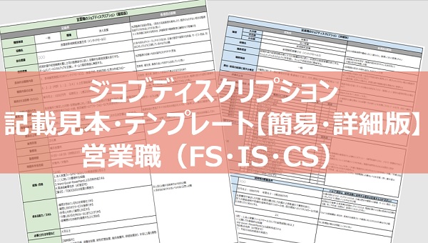欲しい人材を採用するための活動や社員の評価に役立つ営業職(フィールドセールス、インサイドセールス、カスタマーサクセス)のジョブディスクリプション記載見本とテンプレートです。見本は簡易版と詳細版の2種類ご用意しました。ぜひご活用ください。