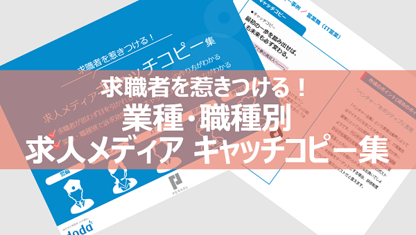パーソルキャリアが提供する求人メディア「doda」にて反響のあった求人広告の中から、厳選して21業種、40職種の代表的なキャッチコピー事例を再編集して揃えました。求人メディア作成の際にご活用ください。