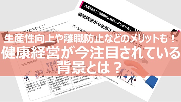 従業員への健康投資を行うことで、従業員の活力向上や生産性が向上し、さらに医療費にかかる企業負担が減少することで利益率が上がるというプラスのサイクルが生まれます。この資料では健康経営についての基礎知識をまとめています。