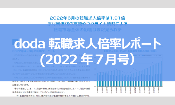 パーソルキャリア株式会社が運営する転職サービス「doda(デューダ)」は、業種別・職種別の求人倍率を算出し、「doda転職求人倍率レポート」として発表しています。このデータは、12業種(「その他」を除く)ごと、12職種ごとに求人倍率を算出しており、転職市場における需給トレンドなどを表すものです。四半期に一度発行しており、今回は2022年4~6月の求人倍率をまとめています。