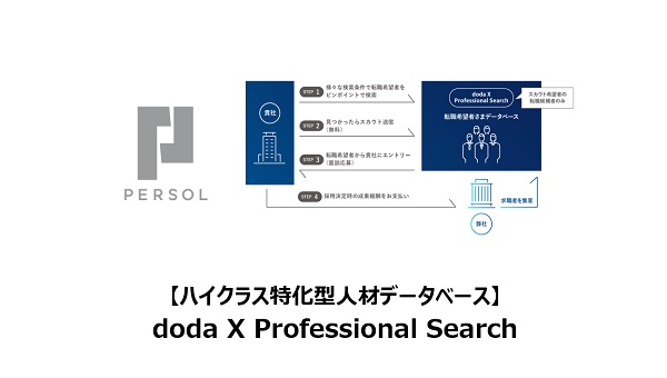 doda X Professional Searchは転職希望のハイクラス人材のデータベースにスカウトを送ることができる、エージェント企業様向けのサービスです。
