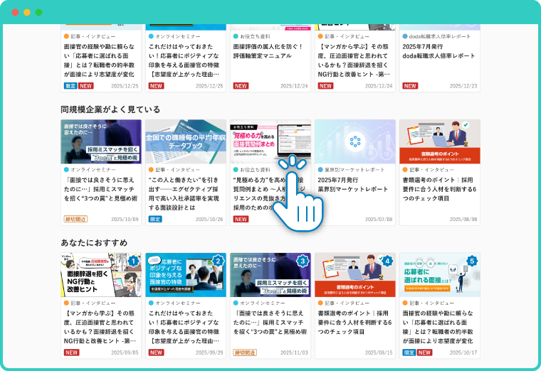 さらに自社の企業規模や業界、募集職種、採用課題に合ったおすすめコンテンツがリコメンドされます。