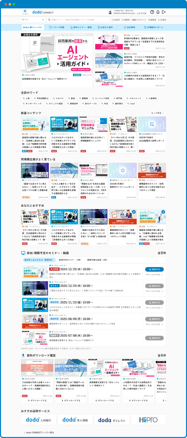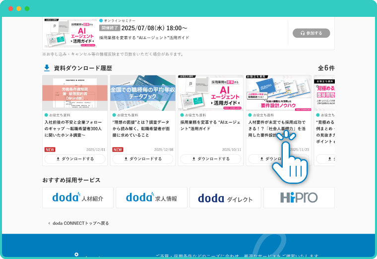 コンテンツがすべて閲覧可能になるほか、doda CONNECTのページ内で、