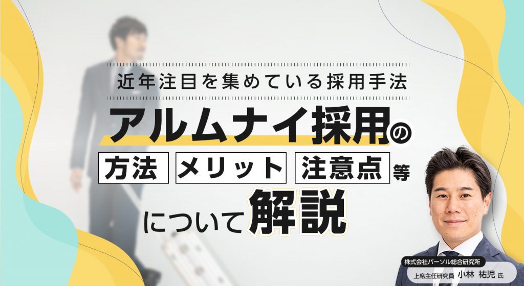 本セミナーで、「アルムナイの活用」に関して研究・調査を実施している株式会社パーソル総合研究所 小林祐児氏に、全国2300人を対象としたコーポレート・アルムナイ(企業同窓生)に関する定量調査や、企業・離職者が互いに有効な関係を継続させることのメリット、注意点、アルムナイを構築するために必要な方法に関してお話を伺います。